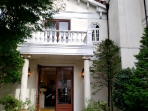 ● 東京都八王子市 ヴィラ・デ・マリアージュ多摩南大沢の結婚式場のエントランスにて